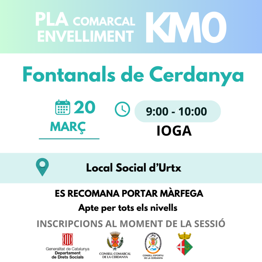 Agenda SESSIÓ DE IOGA – Pla comarcal Envelliment KM0 Divendres 20 de març a Urtx < Entrada AnteriorEntrada Posterior >